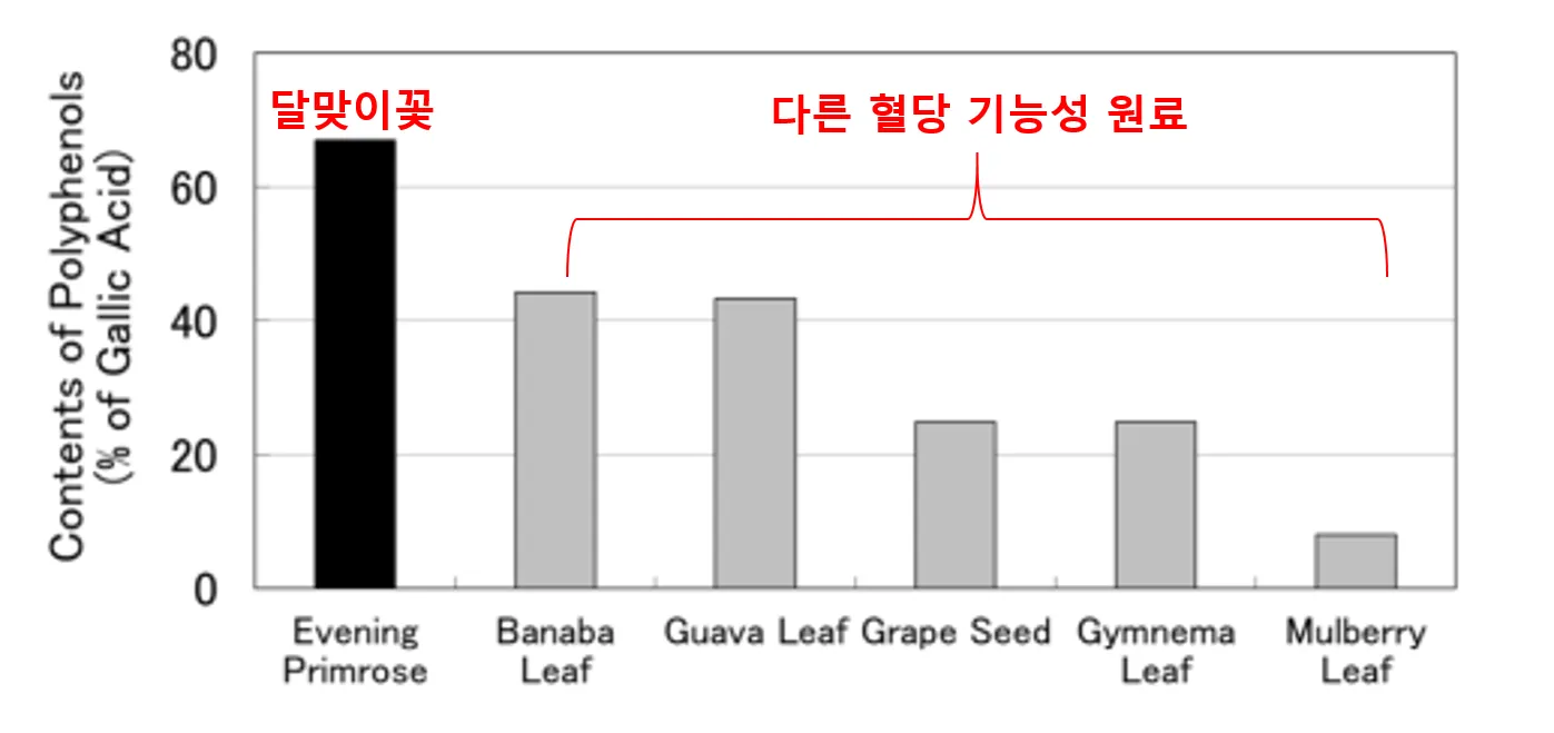 달맞이꽃종자추출물의 폴리페놀 성분은 알파 아밀라제와 알파 글루코시다제라는 소화효소의 작용을 억제합니다. 이 두 효소는 탄수화물을 포도당으로 분해하는 역할을 하는데, 이들의 활동이 억제되면 포도당의 생성과 흡수가 줄어들어 혈당이 급격히 상승하는 것을 방지하는 원리입니다.